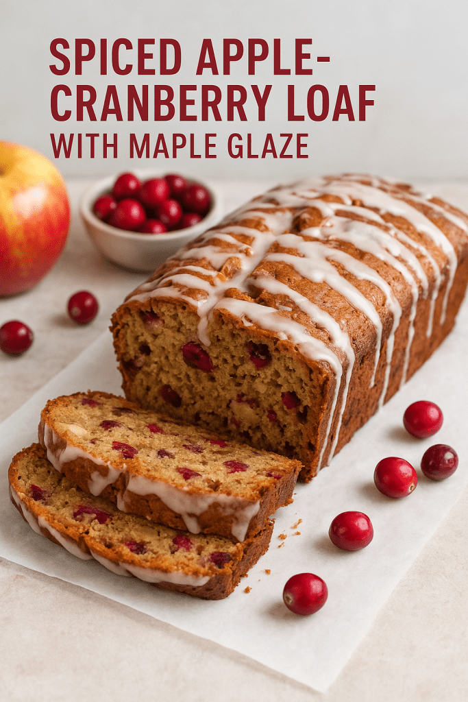 As the weather cools and the holidays draw near, there’s nothing quite like the scent of cinnamon, maple, and baked apples drifting through the kitchen. This Spiced Apple-Cranberry Loaf with Maple Glaze brings all the comfort of fall in one simple, budget-friendly bake — using pantry staples and just a few seasonal ingredients.